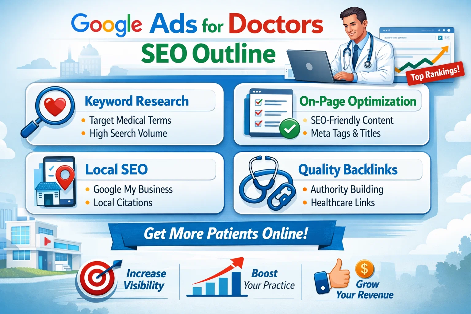 Google Ads for Doctors SEO Outline is one of the fastest ways to attract new patients and grow your practice. When combined with a solid SEO outline, it creates a powerful digital marketing strategy.