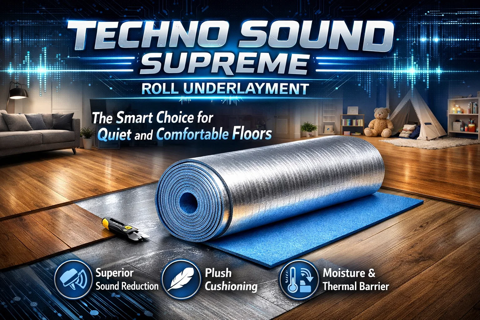 Techno sound supreme roll underlayment is a specialized material installed beneath flooring surfaces. It comes in roll form, making it easy to handle and install across large areas. Its primary purpose is to provide acoustic insulation, moisture protection, and structural support.